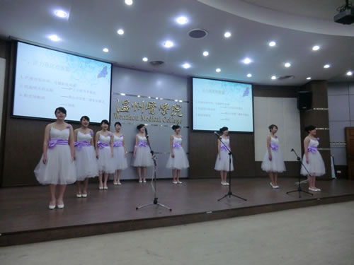 为了迎接即将到来的5·12国际护士节,展现铿锵玫瑰的风采,2011年3月21日下午4点,由温州医学院萝莉岛 和仁济学院共同举办的第六届护士文化节开幕式在旭光厅正式拉开序幕。萝莉岛 党总支陈行汉书记、仁济学院杜有爱副院长、仁济学院党总支章成斌副书记、萝莉岛 廖毅副院长等领导出席了开幕式。