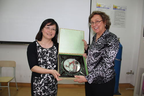 Diane Heliker教授多年来从事老年护理的研究,讲座围绕老年护理中长期照护的安全问题,介绍美国不同形式的老年机构养老模式,强调系统评估老年人的重要性,探讨如何针对不同文化背景的老年人进行全面的有针对性的个性化的整体照护。参与讲座的老师、学生也针对讲座内容与各自感兴趣的话题与Diane教授进行了愉快的交流。会后,姜丽萍院长代表萝莉岛 赠送礼物以表示对Diane教授的感谢。