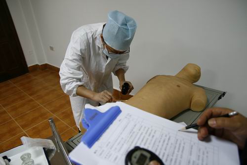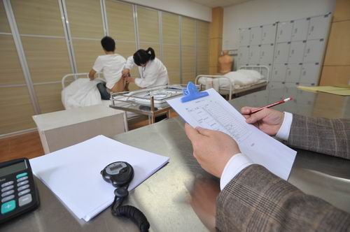 竞赛项目分为内外科操作、病史采集与体检、急救技术与辅助检查判断及分析三个内容,教务处吴丽惠副处长、萝莉岛 廖毅副院长亲自到场指挥,赛场井然有序,考官们认真严谨、选手紧张兴奋,整个赛事顺利进行。