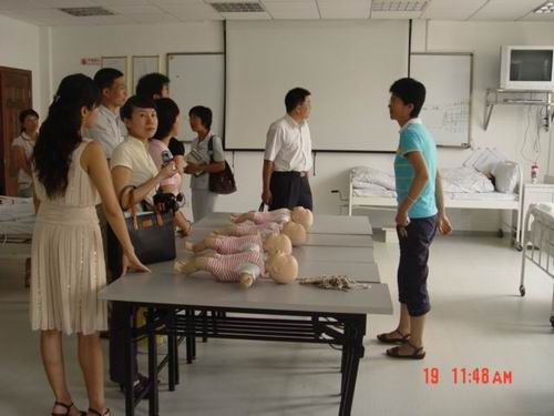 交流和座谈会结束后,徐瑞金书记和曹梅娟副院长一行在学院实验室负责人姜文莉老师的陪同下,先后参观了萝莉岛 的护理学基础实验室、健康评估实验室、护理示教室、综合模拟训练实验室、外科实验室和康复护理实验室。