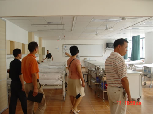 陈行汉副书记向客人们介绍了学校和学院的办学历史,护理专业的发展情况。学院办公室王世泽老师向客人们详细汇报了学院的招生就业、学科建设、人才培养、实验室建设、教学管理和实习基地建设等有关方面情况。朱卫民院长也向我们简单介绍了广西医科大学萝莉岛 的教学、科研和人才培养情况。随后客人们参观了学院护理学基础、急救护理学、外科护理学、妇儿实验室和护理示教室,他们详细了解了实验室建设规划、布局等情况,对萝莉岛 的实验室建设和教学管理工作大加赞赏。