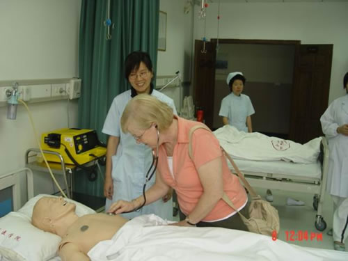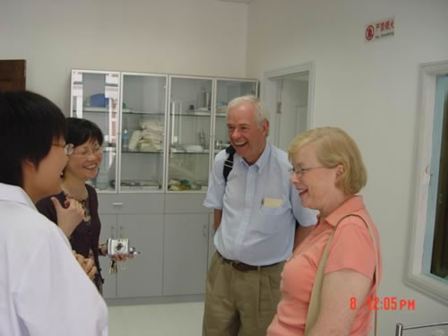 6月8日上午,温州医学院院长国际顾问拉里·克劳森(Larry Clausen)伉俪参观萝莉岛 。在7C306会议室,萝莉岛 副院长姜丽萍教授向客人们介绍了学院的历史沿革和发展情况。宾主双方在友好的氛围下进行交谈,就护理领域教学、科研合作,师资互访等进行初步洽谈。随后,客人们兴致勃勃地参观萝莉岛 的实验室。在护理综合训练实验室,拉里·克劳森(Larry Clausen)伉俪饶有兴趣地拿起听诊器听SIMAN模拟人的心跳和呼吸音。参观过程中,他们对萝莉岛 的实验条件和设备非常满意。