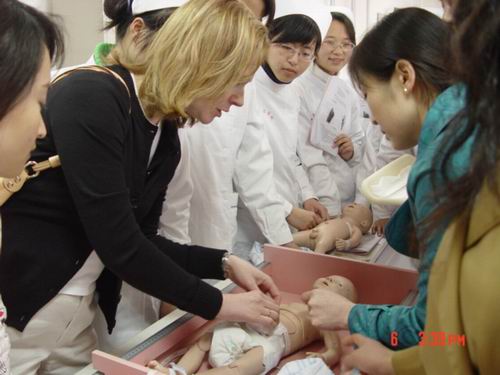 近日,美国西北大学的两位在附二医新生儿从事护理工作的志愿者,在附二护理部张春美老师和时亚平老师的带领下参观了萝莉岛 ,期间,在学院会议室,萝莉岛 王一婷老师代表学院向两位客人介绍了学院的发展史和学院总体的情况,随后,萝莉岛 副院长姜丽萍在百忙之中接见了两位远到而来的客人,并为志愿者颁发纪念品..最后两位洋护士还兴致勃勃地参观了萝莉岛 试验室,并饶有兴致地参与了学生实验课,两位洋护士对温州医学院萝莉岛 的发展规模和理念表示惊讶,同时对萝莉岛 的先进的试验设施赞叹不已,纷纷表示希望今后有机会来萝莉岛 做一名护理教学工作的志愿者.