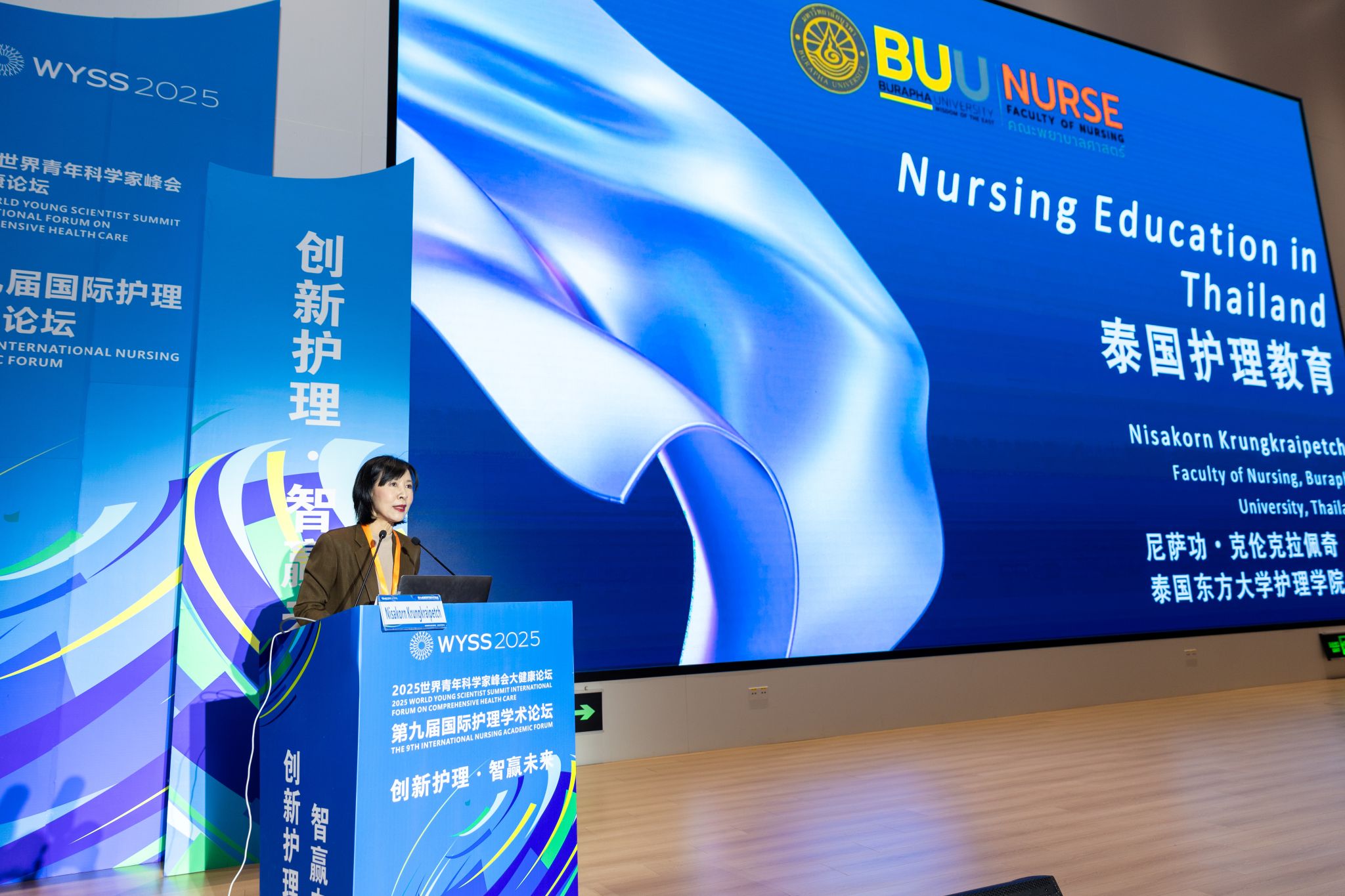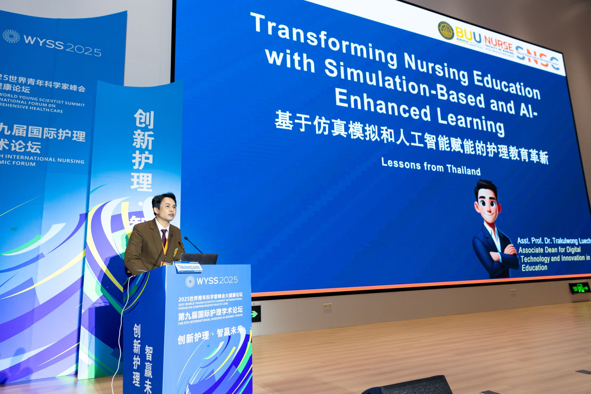 泰国东方大学萝莉岛 行政与组织管理副院长Nisakorn Krungkraipetch教授和信息技术与创新副院长Trakulwong Leucha教授分别从体系构建与技术创新角度分享了泰国的护理教育经验。Nisakorn Krungkraipetch教授在《泰国护理教育》报告中系统介绍了泰国护理教育的背景、结构体系、医保政策、实践模式及发展挑战,为深化国际交流合作提供了重要参考。Trakulwong Leucha教授则在《模拟情境与人工智能强化学习驱动的护理教育变革》的报告中,聚焦数字化转型,分享了模拟情境教学与AI技术在革新护理教育中的实践成果,为全球护理教育注入新智慧。