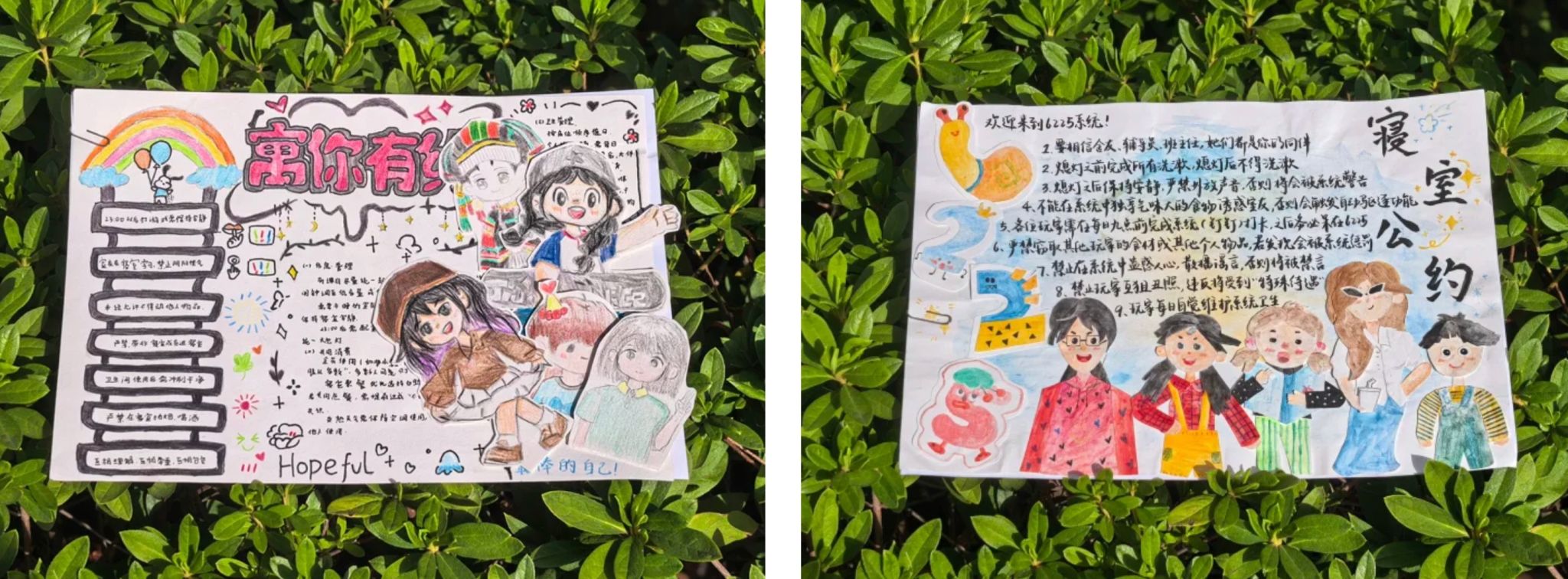 为响应校园文明建设号召,深化寝室文化内涵,同时增进 2025 级新生寝室成员间的协作情谊,萝莉岛 2025 级于近期开展寝室“公约焕新”及寝室 “Hulog” 征集活动。寝室“公约焕新”通过创意手绘、图文排版、立体手工等创作形式,让寝室公约从文字变为立体,从规范走向共鸣。通过寝室 “Hulog” 征集活动,挖掘寝室生活中的温暖故事、创意瞬间与团队协作精神,引导同学们营造积极向上、团结友爱的寝室环境。“寝室公约焕新”让规范成为大家共同认可的生活准则,寝室 “Hulog” 创作增进了寝室成员间的了解与信任,营造出温馨和谐的寝室氛围,实现了“文化建寝”与“情感聚寝”的双向提升。