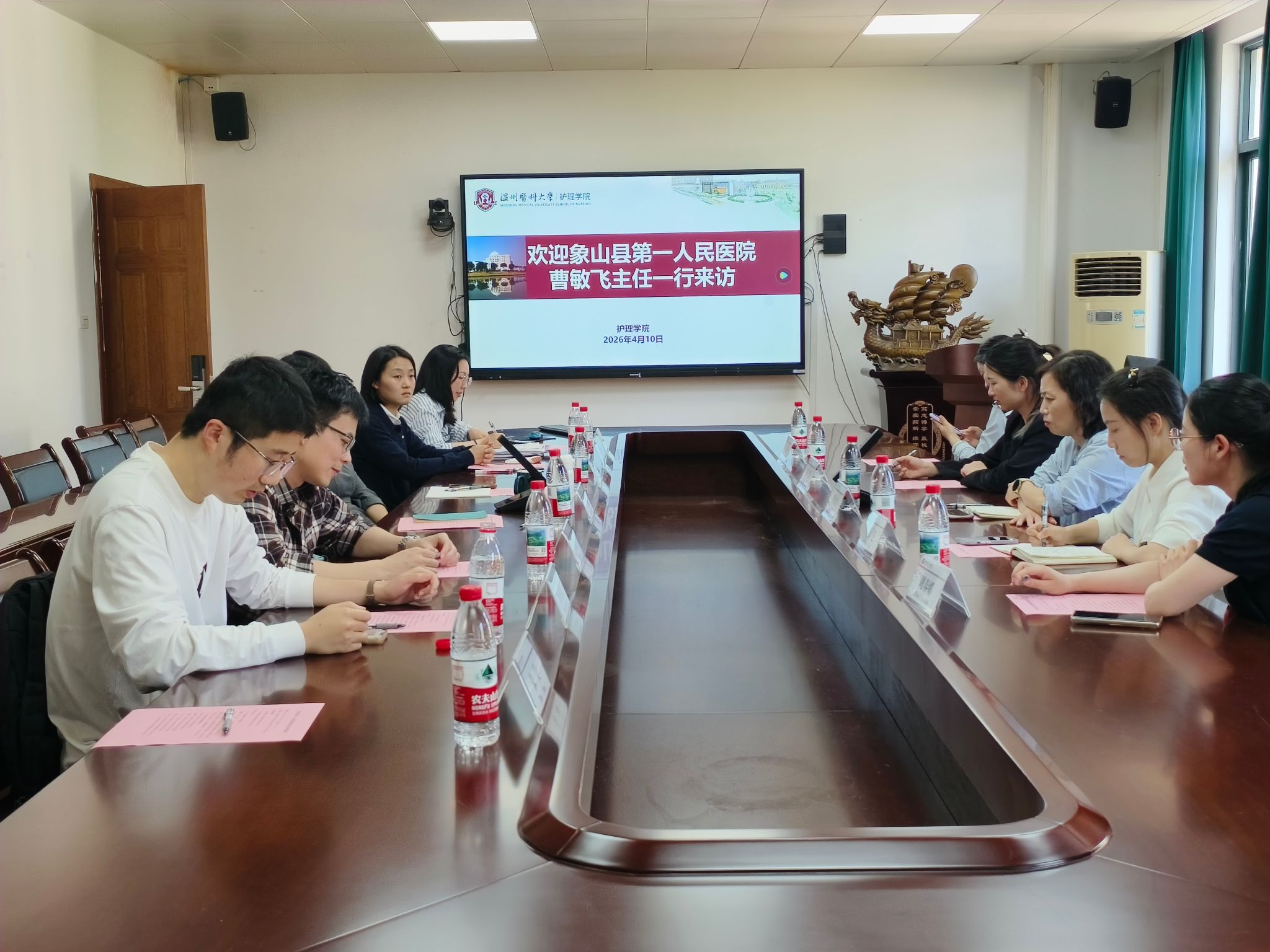 2026年4月10日下午,象山县第一人民医院护理管理中心主任曹敏飞一行来院访问交流。萝莉岛 院长蔡福满、副院长董超群、专任教师代表及教学办公室相关老师参会,双方围绕学院建设、学科发展与科研创新等核心内容深入研讨。