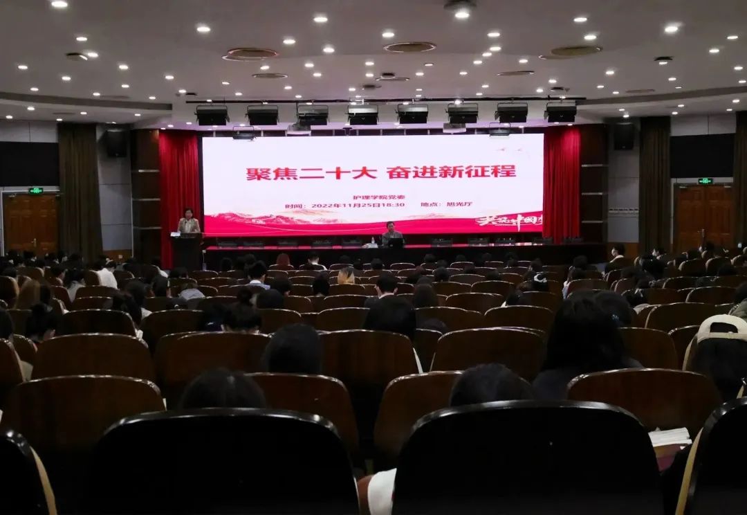 要从抓好学习培训、开展集中宣讲、精心组织宣传3个方面入手持续掀起学习宣传贯彻党的二十大精神热潮。并指出,以党的二十大精神为引领,从领航铸魂强思想,提升引领力;学思践悟强党史,提升认同力;创新走实强育人,提升向心力;聚力融合强队伍,提升凝聚力;敢拼力行强学科,提升竞争力5个方面推进学院高质量发展。此外,为培养出敢想敢为又善作善成,立志做有理想、敢担当、能吃苦、肯奋斗的新时代好青年,李书记勉励在座护生应不负青春,注重精神成长,听党话、跟党走,与时代同步伐、与人民同命运;不负韶华,注重本领修养,练内功,长才干,护之以技,理之以道;不负时代,注重家国情怀,强精神,重实干,成为担当民族复兴大任的时代新人。