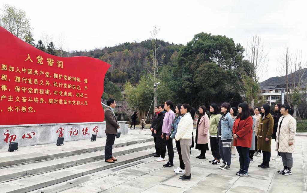 在教育基地广场,在周恩红副书记的带领下重温入党誓词,重温入党初心和对党的庄重承诺。八十字的铮铮誓言,是每一名共产党员入党初心的真实写照,提醒大家不忘初心、牢记使命,在平凡的工作中砥砺前行,作出自己的贡献。