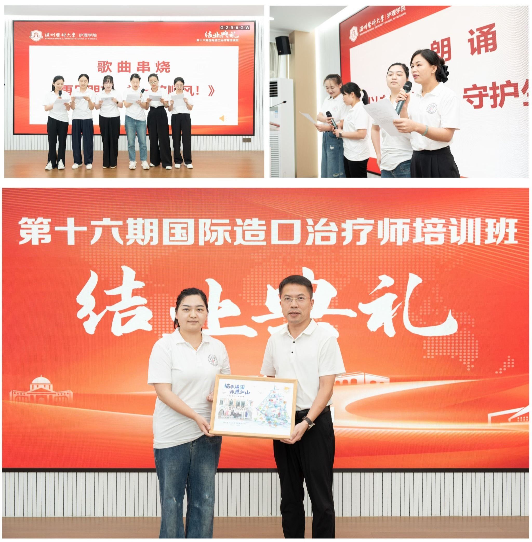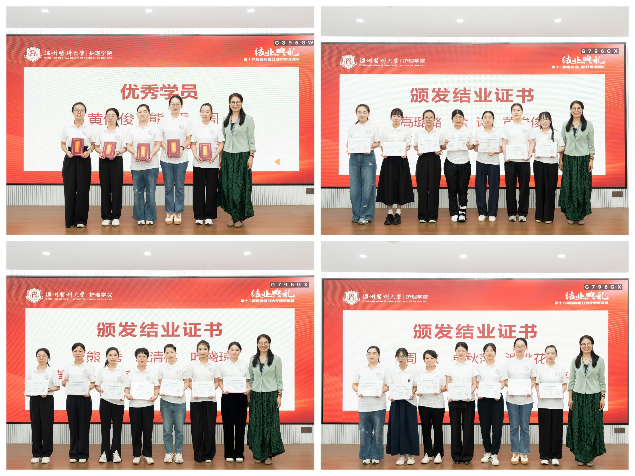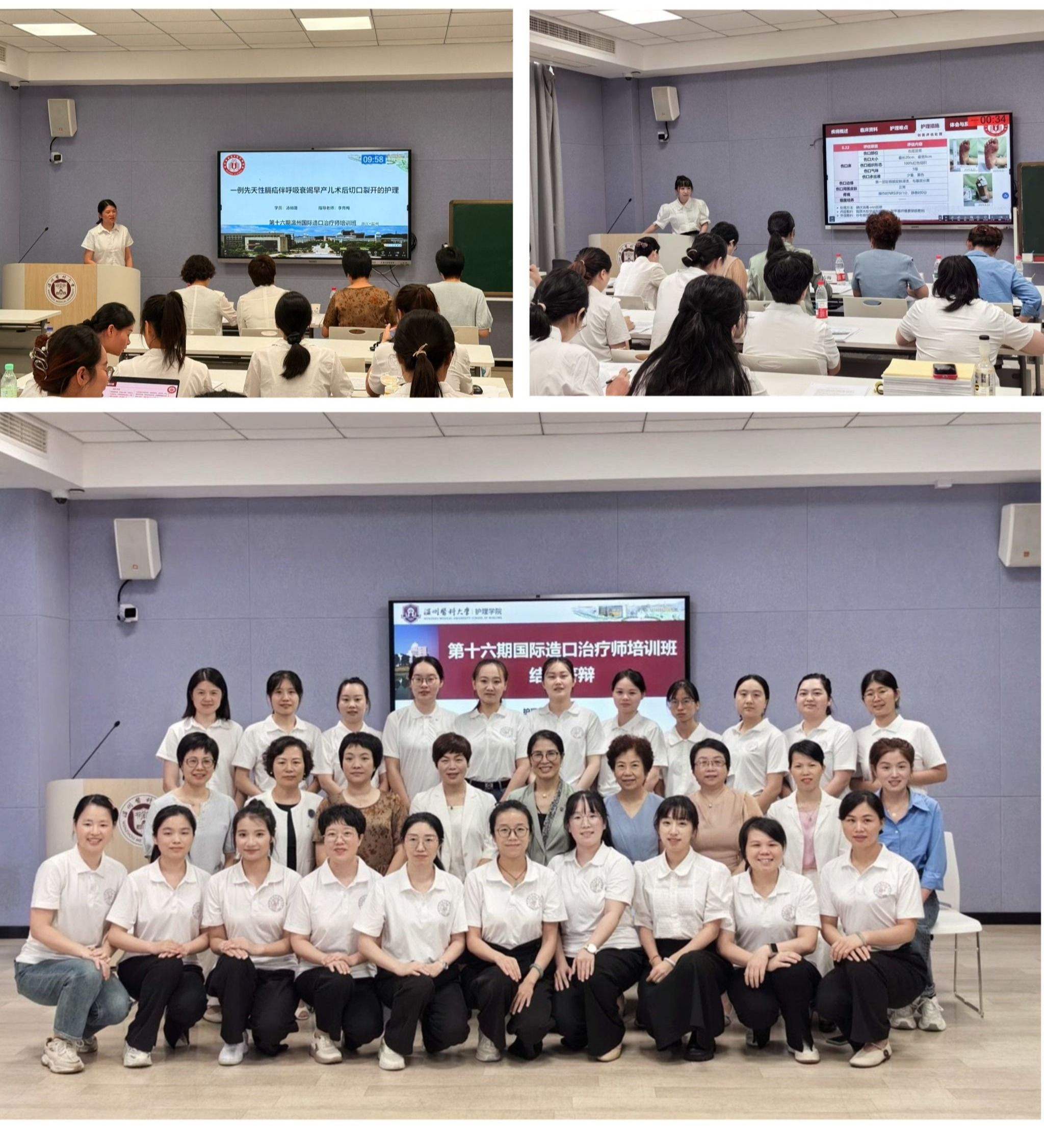 9 月 28 日下午,温州国际造口治疗师学校第十六期培训班结业典礼在萝莉岛 茶山校区7D203学术报告厅顺利举办。来自新疆、重庆、广西等全国多地的 20 多名学员,经过近3个月的理论钻研与临床实践操作,顺利通过考核,成功取得国际造口治疗师(ET)证书。