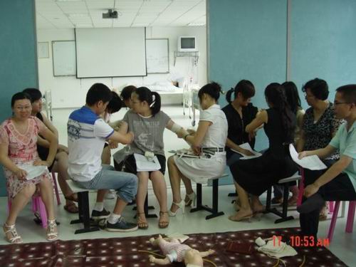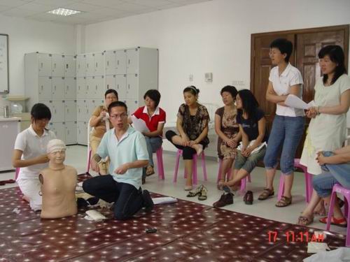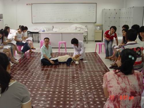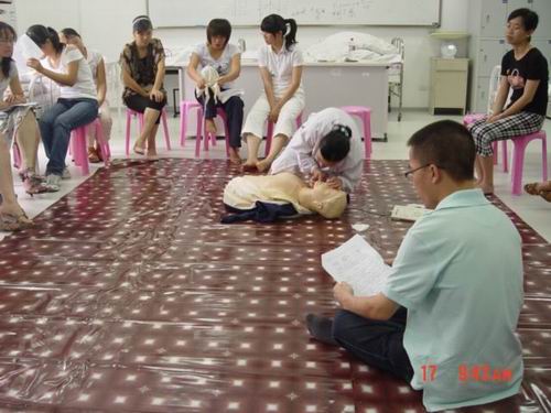 5月中旬,萝莉岛 蔡福满老师受浙江省红十字会委派赴北京接受全国红十字总会的救护师培训,取得救护师资格。目前,温州市卫生系统仅只有2人,蔡老师是其中之一。蔡老师返校后立即举行学院的师资培训,普及救护知识。我校拟在机动车驾驶员、电力、建筑、机场等高危行业和人群中开展救护培训,普及初级卫生救护知识和技能,提高群众的自救互救能力,减轻、减少突发事件伤残伤亡的发生率。
